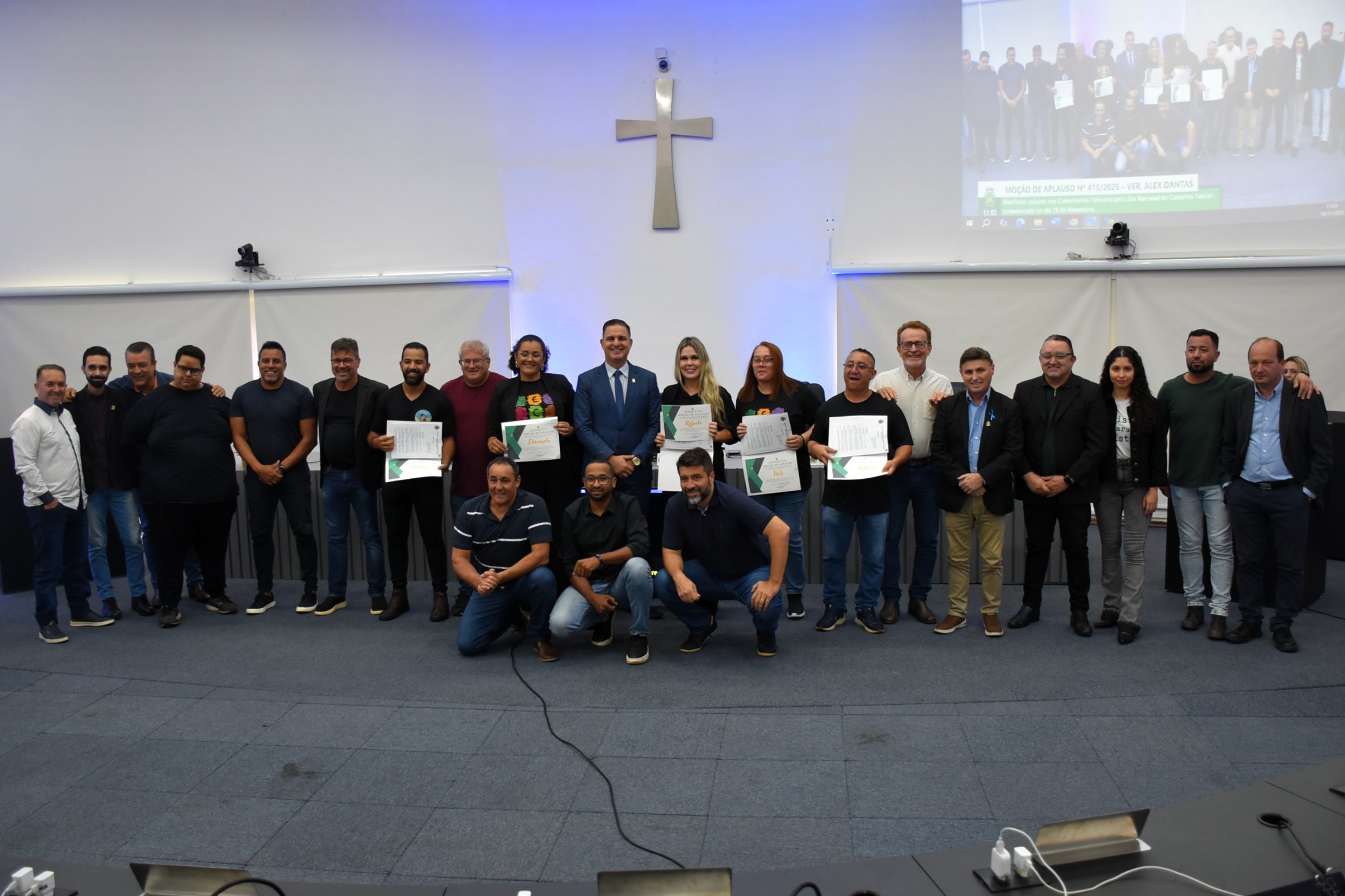 Durante a sessão, também foram entregues quatro moções de aplauso. O vereador Juca Bortolucci homenageou o Sincomerciários pelos seus 34 anos de fundação, representado pelo presidente Valdeir Matheus Ribeiro. O vereador Joi Fornasari prestou homenagem à Banda Estrela Perdida, reconhecendo sua contribuição à preservação e valorização da música sertaneja.