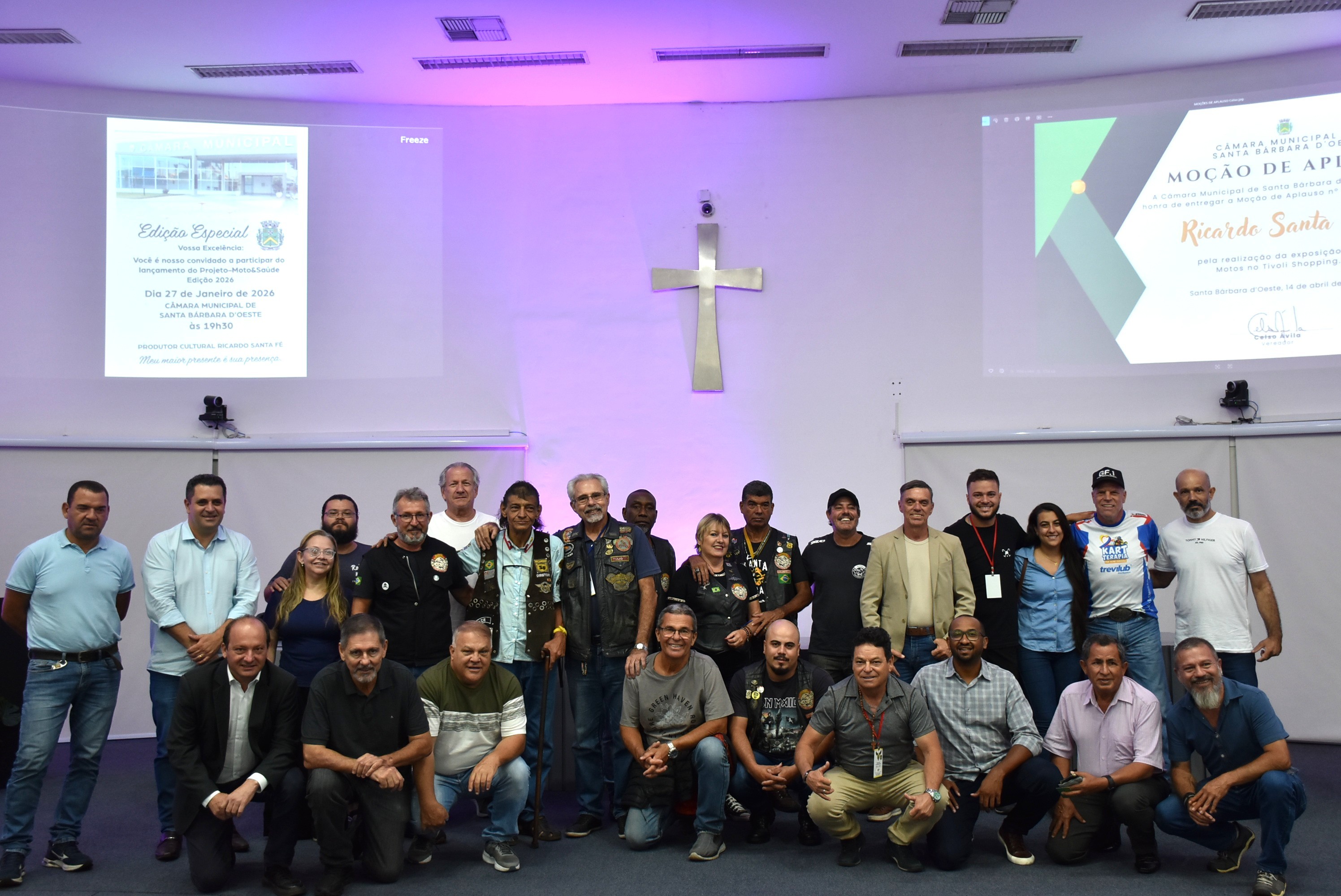 A Câmara Municipal de Santa Bárbara d’Oeste sediou, nesta terça-feira (27), solenidade para a entrega da Moção nº 102/2025, de autoria do vereador Celso Ávila, que manifesta aplauso ao produtor cultural Ricardo Santa Fé pela realização da Exposição de Motos no Tivoli Shopping, ocorrida no ano passado.