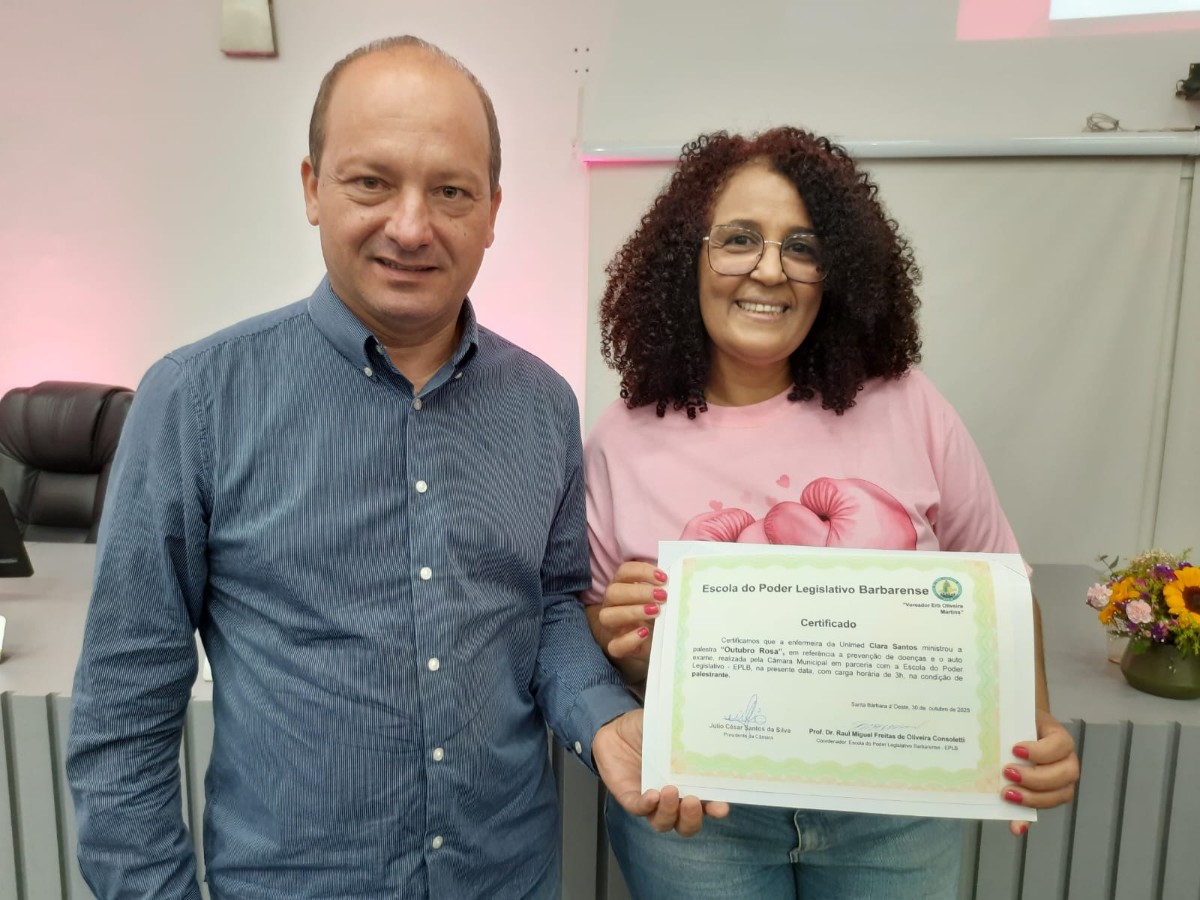 O Legislativo barbarense recebeu, nesta quinta-feira (30), a enfermeira Clara Santos, da Unimed Santa Bárbara d’Oeste e Americana, para conduzir uma palestra voltada às servidoras da Casa, no âmbito da campanha Outubro Rosa. A iniciativa abordou temas essenciais como o autocuidado, a importância dos exames preventivos para o câncer de mama e para o câncer do colo do útero — reforçando a ideia de que a prevenção é uma ferramenta poderosa na saúde da mulher.