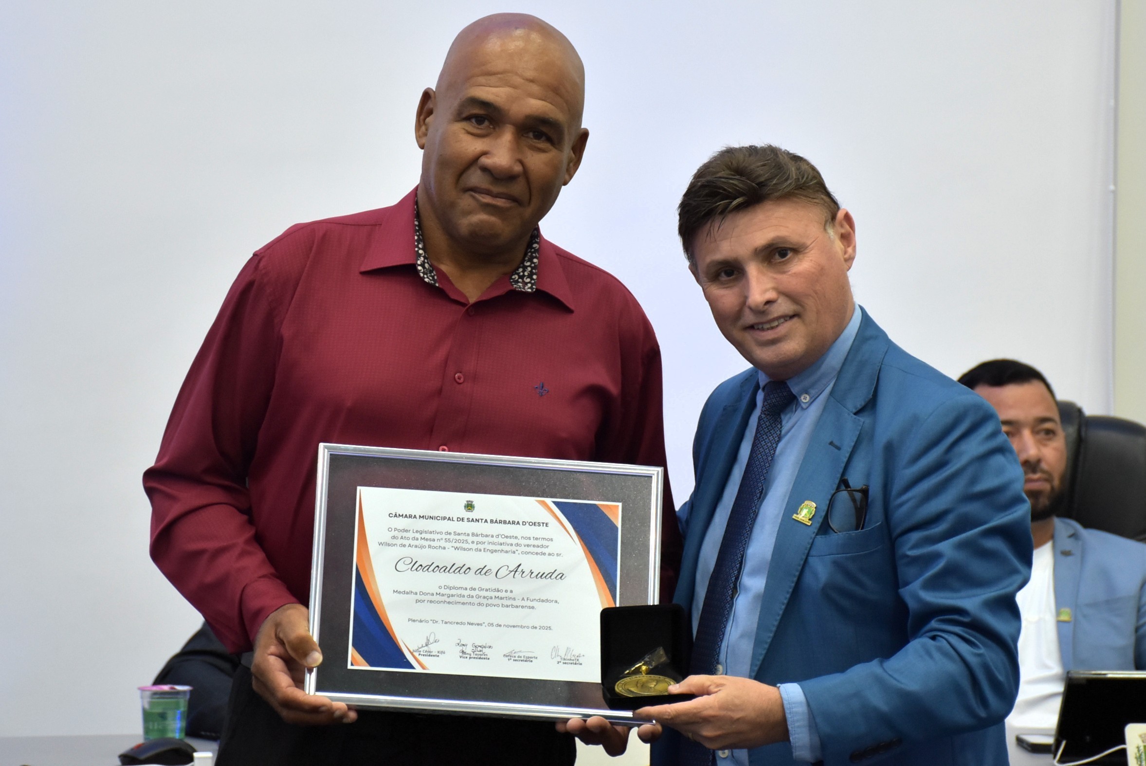 A Câmara Municipal de Santa Bárbara d’Oeste realizou, na noite de quarta-feira (5), a solenidade de entrega da Medalha Dona Margarida da Graça Martins – A Fundadora e do Diploma de Gratidão. As honrarias reconhecem cidadãos e instituições que prestaram relevantes serviços ao desenvolvimento do município.