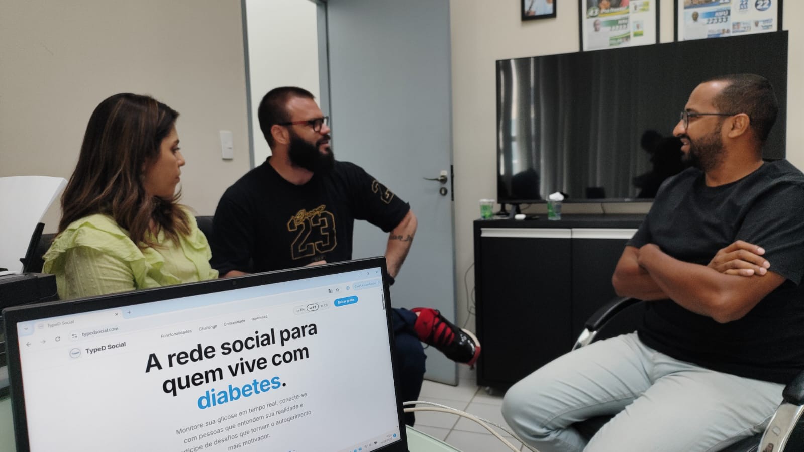 O presidente da Câmara Municipal de Santa Bárbara d’Oeste, Júlio César Kifú, recebeu nesta quinta-feira (16) representantes ligados à causa do diabetes para discutir iniciativas voltadas à melhoria da qualidade de vida da população diagnosticada com a doença. Participaram do encontro o gerente de engenharia de software Diego Favaro e a nutricionista Renata Tim Martins, que apresentaram o projeto “TypeD Social”, uma rede social voltada exclusivamente para pessoas com diabetes. A plataforma tem como objetivo promover a troca de informações, apoio mútuo e acompanhamento da rotina dos usuários.