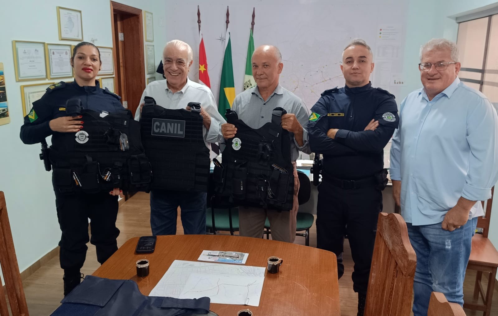 Também participaram do encontro o comandante da Guarda Civil Municipal, Luis Fernando, e a subcomandante Juliana Rodrigues, que acompanharam a entrega do novo fardamento e ressaltaram a importância do investimento para a corporação.