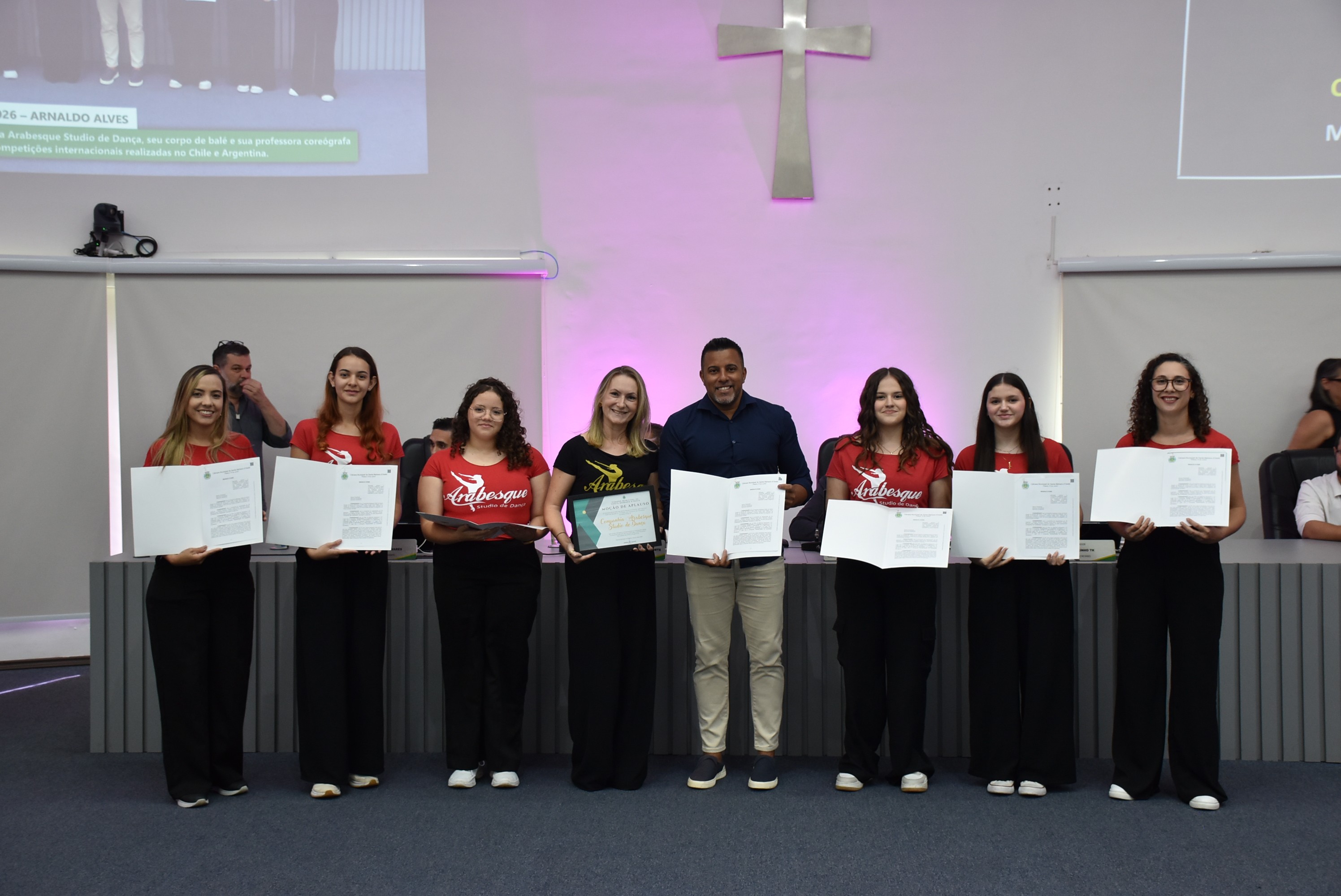 A sessão contou ainda com a entrega de duas moções de aplauso. A primeira delas, de autoria do vereador Arnaldo Alves, em homenagem à Companhia Arabesque Studio de Dança, pelas conquistas internacionais. A segunda, apresentada pelos vereadores Carlos Fontes e Felipe Corá, ao ator barbarense Leandro Pontes, pela participação na produção “Dark Horse”, cinebiografia do ex-presidente Jair Bolsonaro.