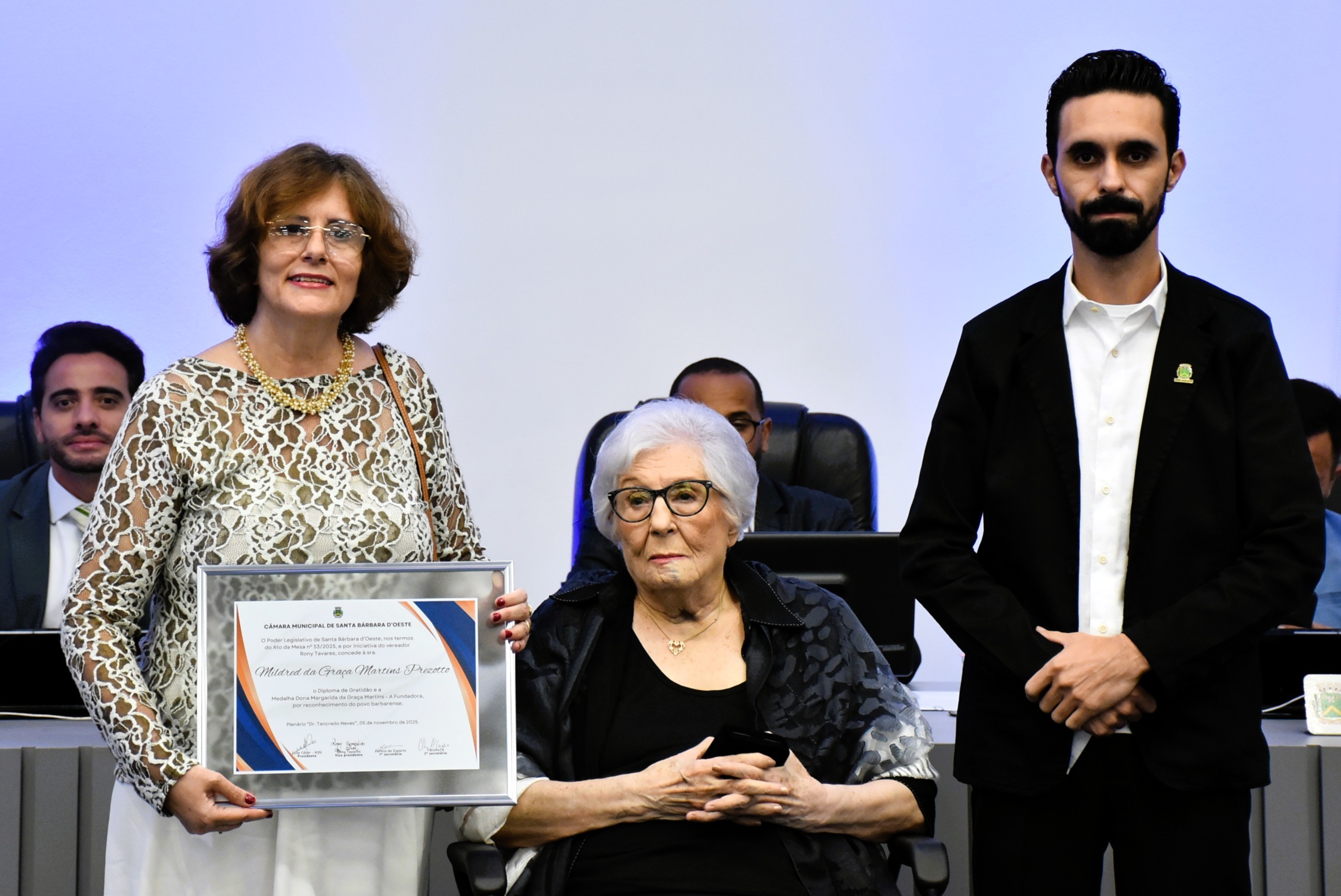 A Câmara Municipal de Santa Bárbara d’Oeste realizou, na noite de quarta-feira (5), a solenidade de entrega da Medalha Dona Margarida da Graça Martins – A Fundadora e do Diploma de Gratidão. As honrarias reconhecem cidadãos e instituições que prestaram relevantes serviços ao desenvolvimento do município.